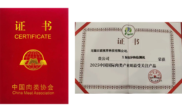 同时,日联视界凭先进AI智检技术赢得行业高度认可,荣膺“2025中国国际肉类产业周最受关注产品”奖,标志着业界对日联视界检测技术创新性、实用性的权威认证。